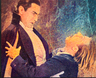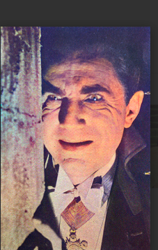 As Dracula, Bela Lugosi wears a maniacal expression, sometimes flits in and out of windows in the form of a bat.